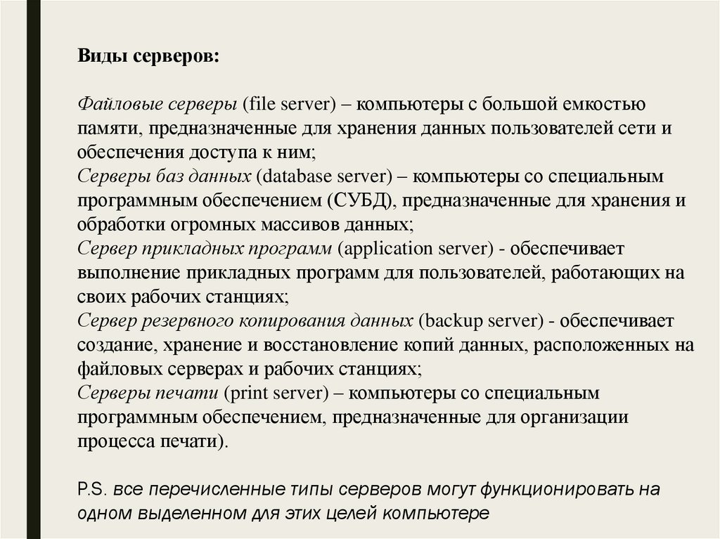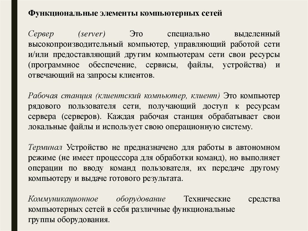 Функциональные элементы компьютерных сетейСервер