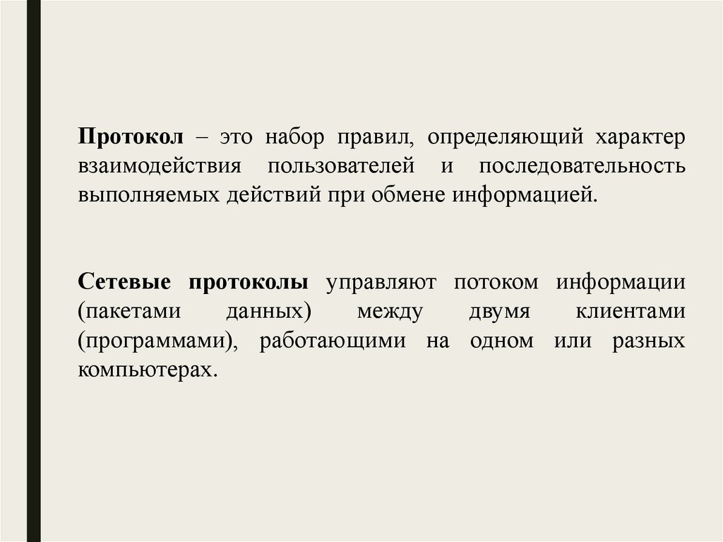 или разных типов по одному протоколу обмена данными.