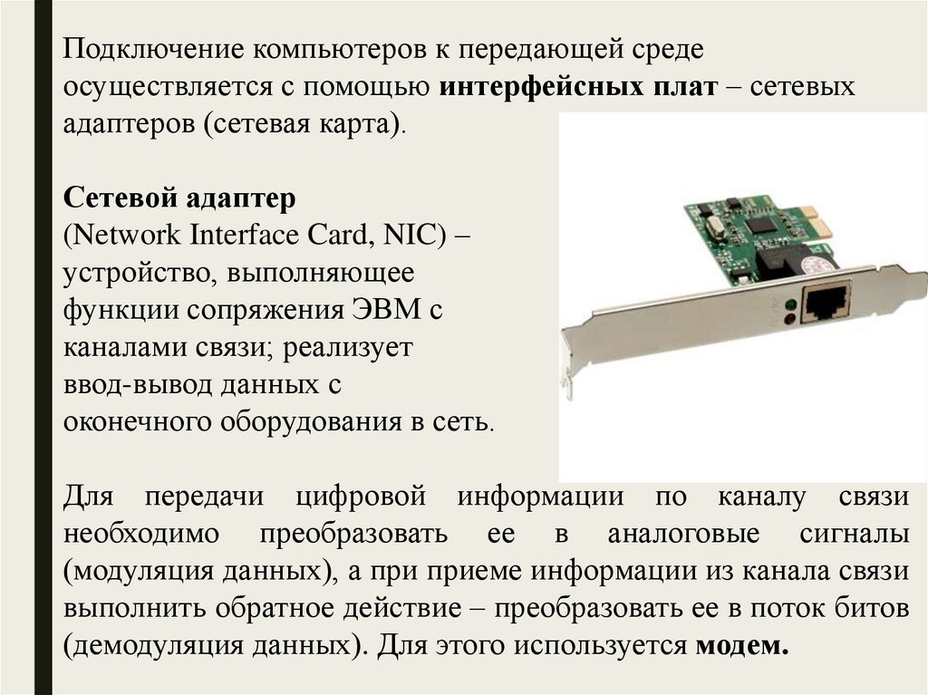 оптоволоконный и пр.) - реализуют собственно перенос сигнала;
