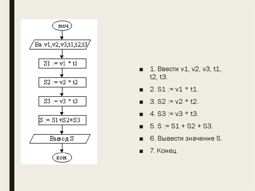 ■ 1. Ввести v1, v2, v3, t1,t2, t3.