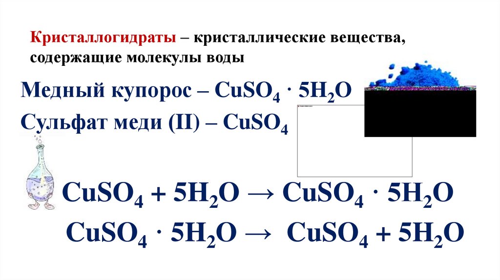 Кристаллогидраты – кристаллические вещества,содержащие молекулы воды