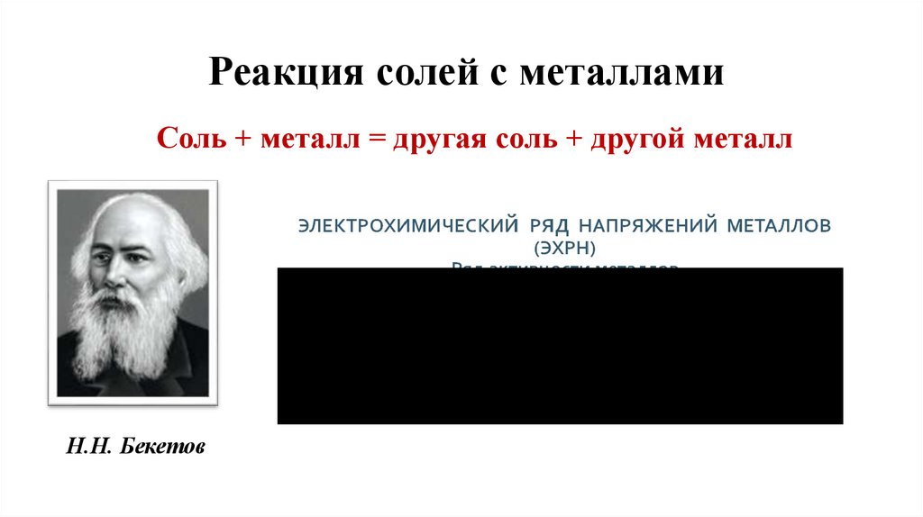 Реакция солей с металламиСоль + металл = другая соль + другой металл