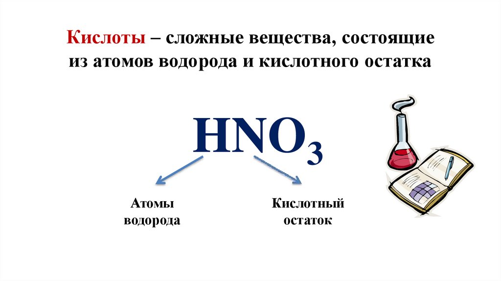 Кислоты – сложные вещества, состоящиеиз атомов водорода и кислотного остатка