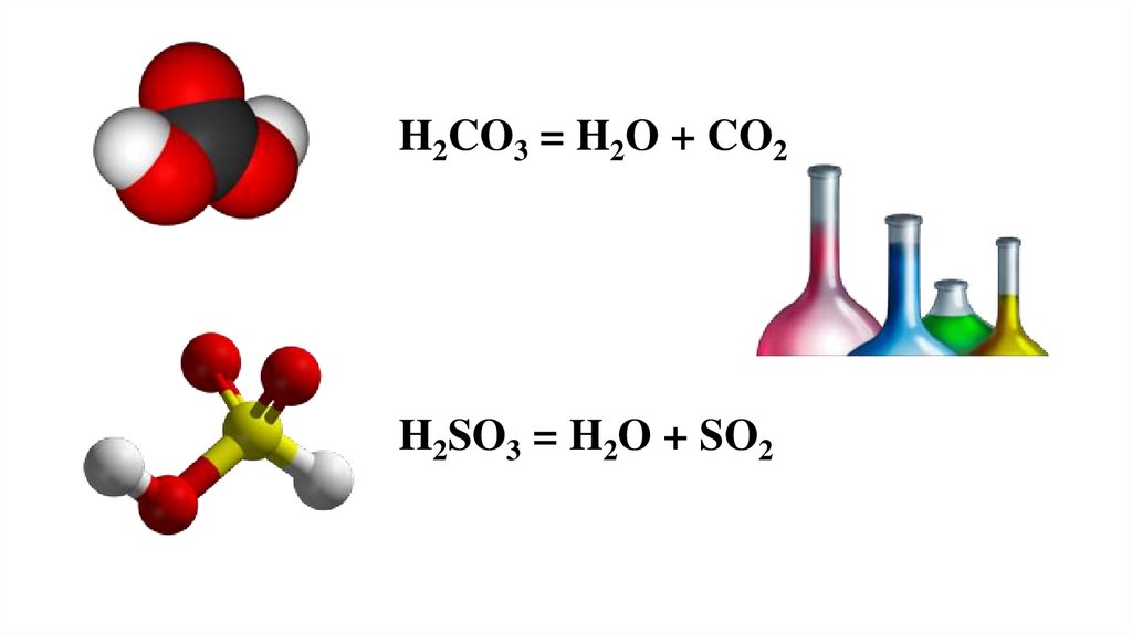 H2CO3 = H2O + CO2H2SO3 = H2O + SO2