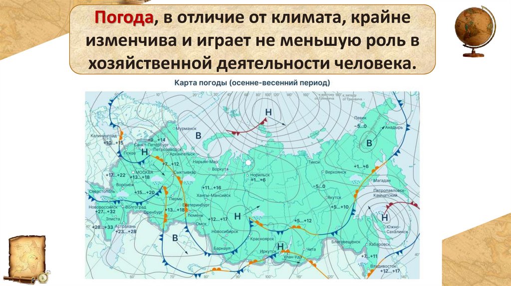 Погода, в отличие от климата, крайнеизменчива и играет не меньшую роль в