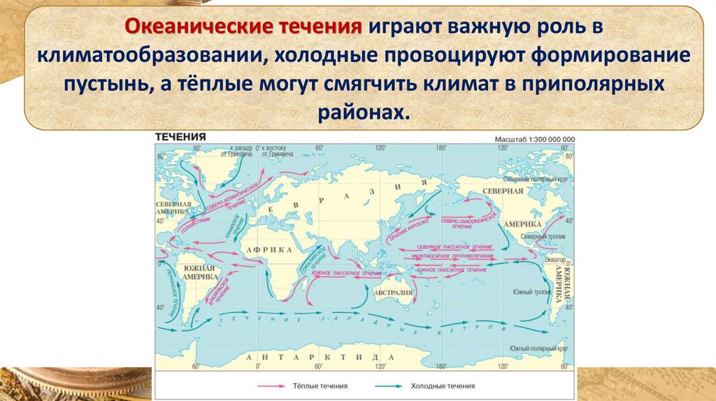 Океанические течения играют важную роль вклиматообразовании, холодные провоцируют формирование