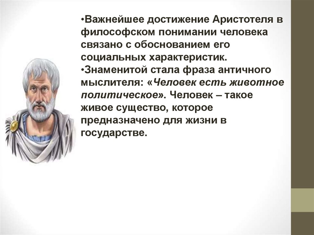 •Важнейшее достижение Аристотеля вфилософском понимании человека
