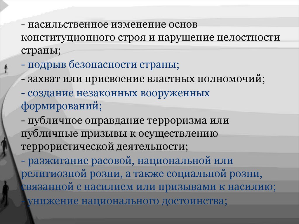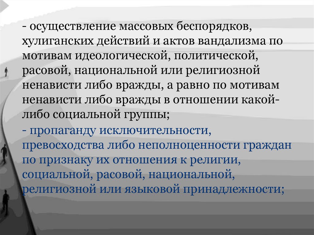 - осуществление массовых беспорядков,хулиганских действий и актов вандализма по