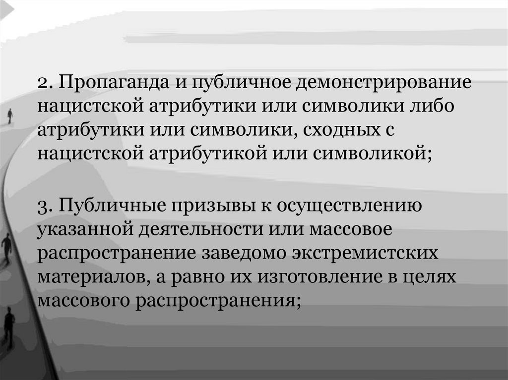 2. Пропаганда и публичное демонстрированиенацистской атрибутики или символики либо