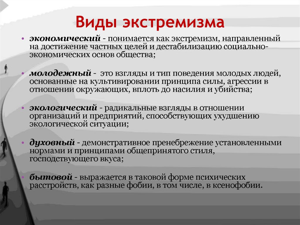 Виды экстремизма• экономический - понимается как экстремизм, направленный