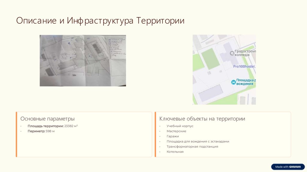 Описание и Инфраструктура ТерриторииОсновные параметры