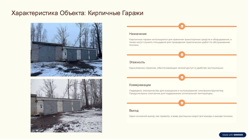 Характеристика Объекта: Кирпичные ГаражиНазначение