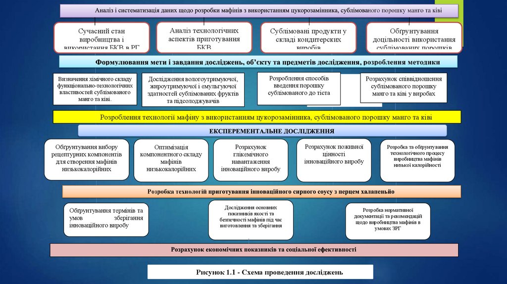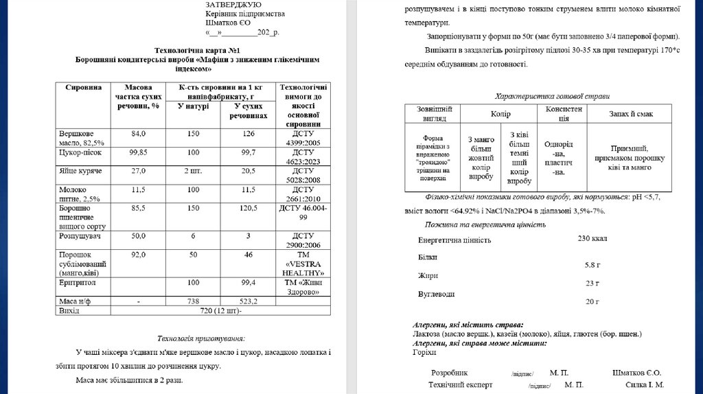 Розроблення технології мафіну з використанням цукорозамінника, сублімованого порошку манго та ківі