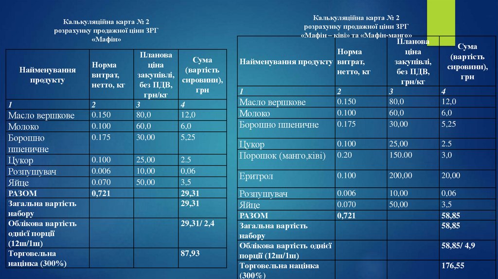Калькуляційна карта № 2розрахунку продажної ціни ЗРГ