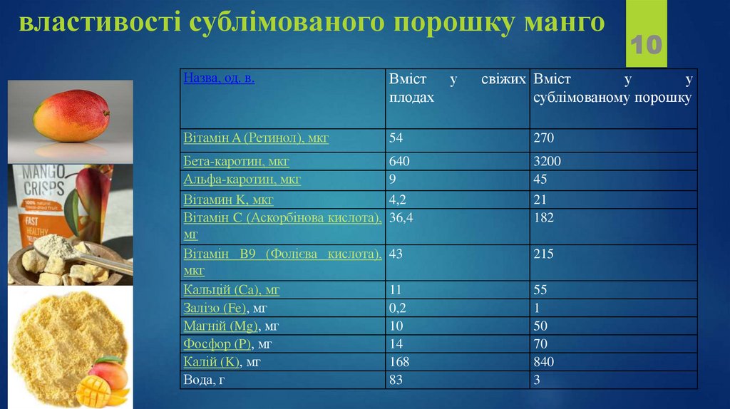 сублімованих порошків манго й ківі у складі рецептури удосконалених