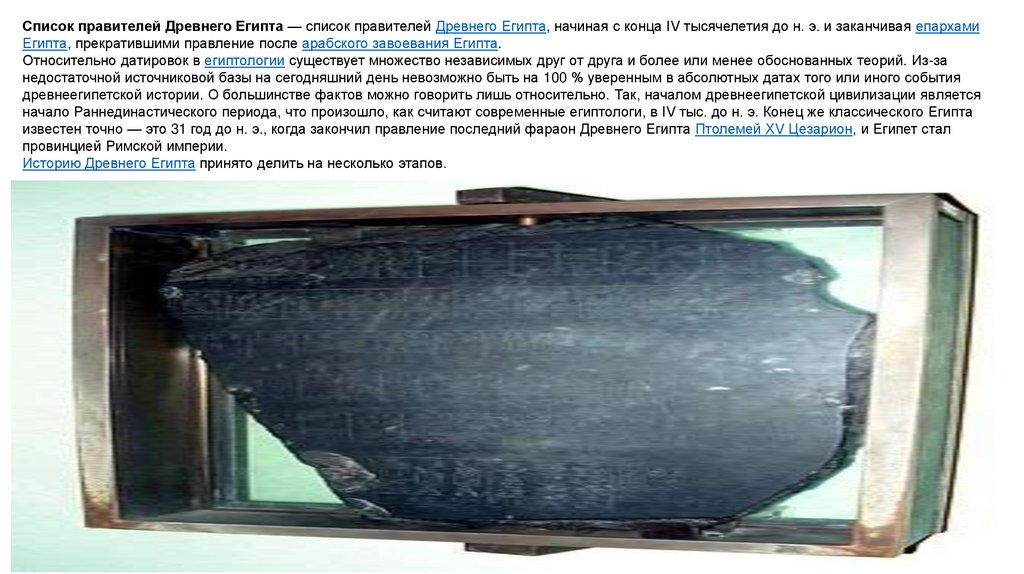 древнеегипетской истории. О большинстве фактов можно говорить лишь относительно. Так, началом древнеегипетской цивилизации является