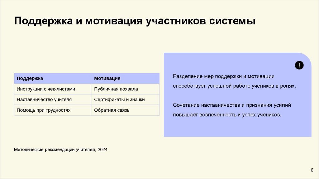 Поддержка и мотивация участников системыРазделение мер поддержки и мотивации