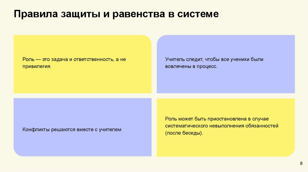 Правила защиты и равенства в системеРоль — это задача и ответственность, а не