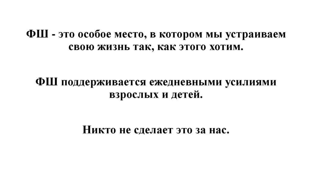 ФШ - это особое место, в котором мы устраиваемсвою жизнь так, как этого хотим.