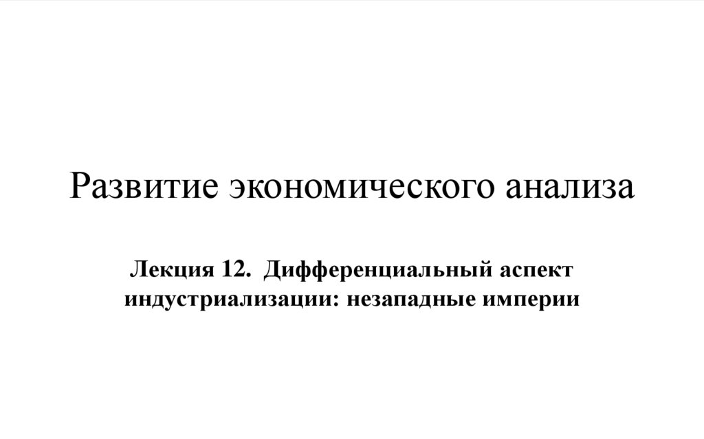 Лекция 12. Дифференциальный аспектиндустриализации: незападные империи