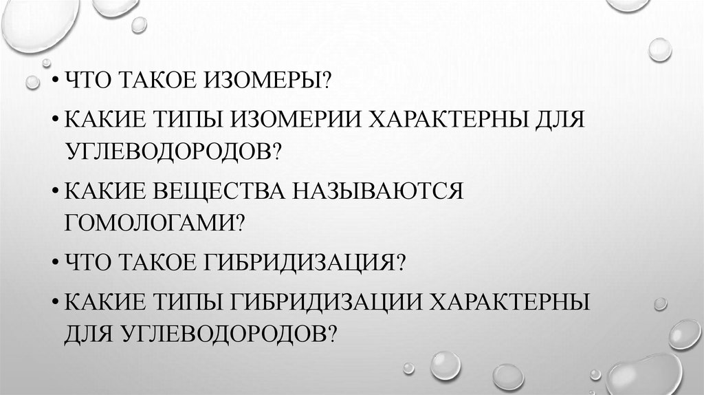 • ЧТО ТАКОЕ ИЗОМЕРЫ?• КАКИЕ ТИПЫ ИЗОМЕРИИ ХАРАКТЕРНЫ ДЛЯ