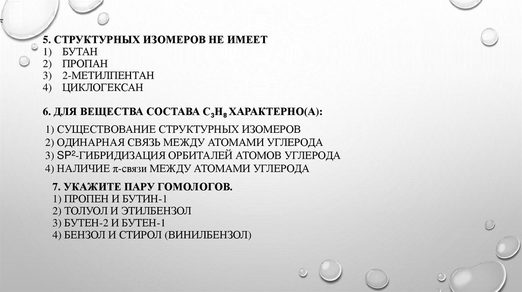 5. СТРУКТУРНЫХ ИЗОМЕРОВ НЕ ИМЕЕТ1) БУТАН
