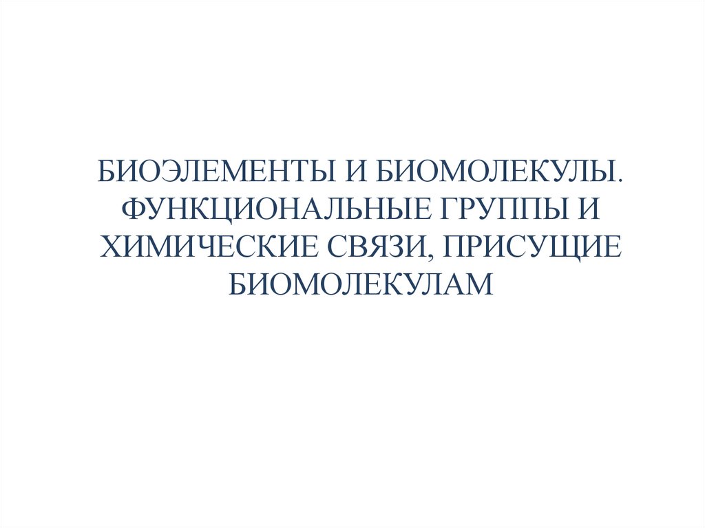 БИОЭЛЕМЕНТЫ И БИОМОЛЕКУЛЫ.ФУНКЦИОНАЛЬНЫЕ ГРУППЫ И