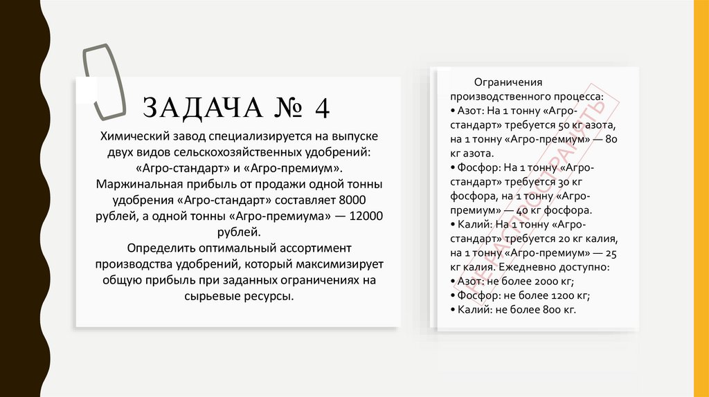ЗАДАЧА № 4Химический завод специализируется на выпуске