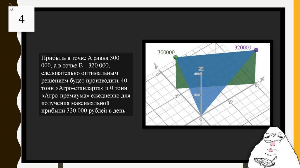 4Прибыль в точке A равна 300