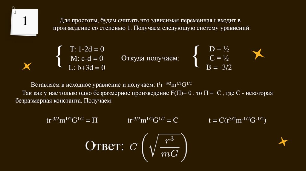 Вставляем в исходное уравнение и получаем: t1r -3/2m1/2G1/2