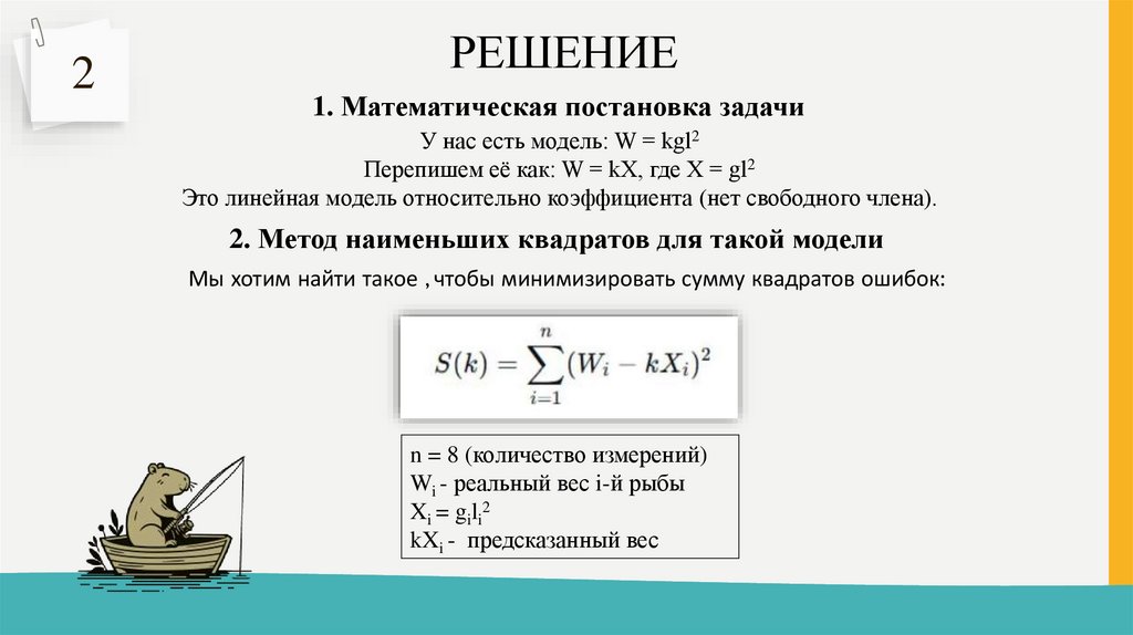 рыбы. «Подгоните» модель W = kgl2 к