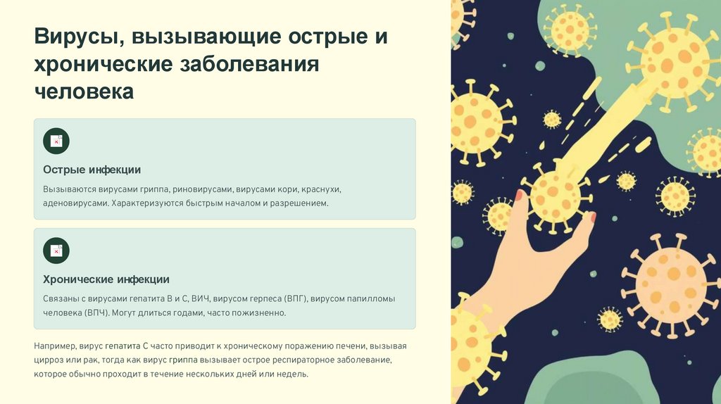 Вирусы вызывают как острые, так и хронические инфекции, каждая из