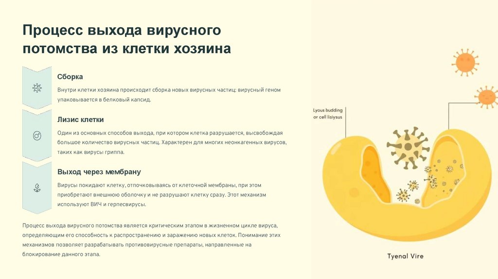 Процесс выхода вирусного потомства является критическим этапом в жизненном цикле вируса,