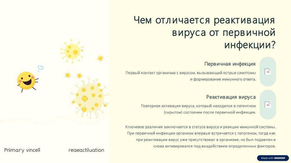 Реактивация — это повторное пробуждение латентного вируса, которое