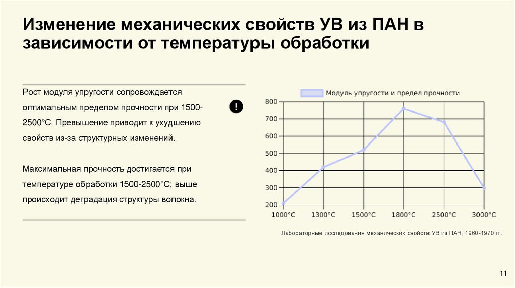 Влияние температуры термообработки намеханические свойства УВ из пека