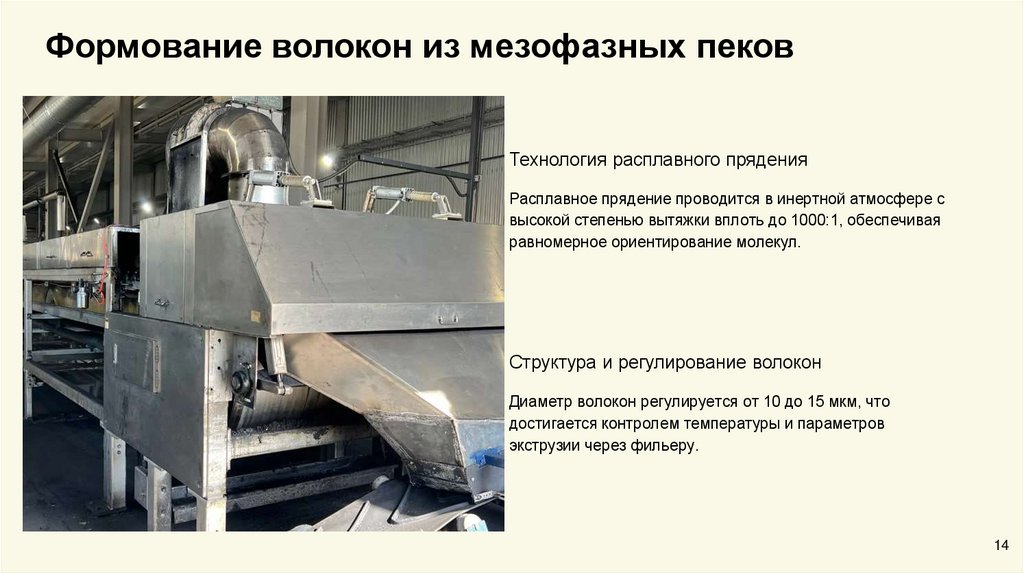 Формование волокон из мезофазных пековТехнология расплавного прядения