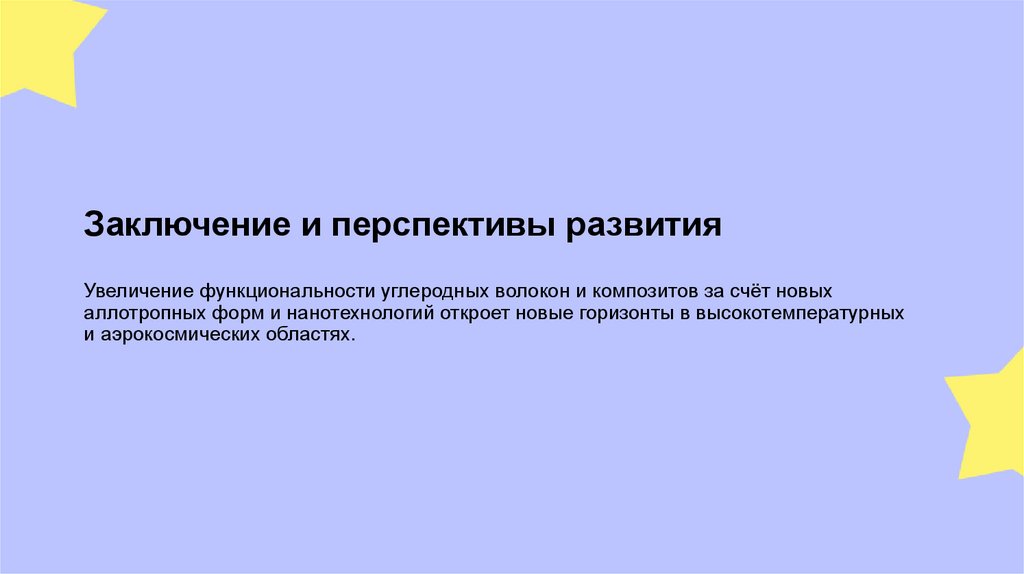 Заключение и перспективы развитияУвеличение функциональности углеродных волокон и композитов за счёт новых