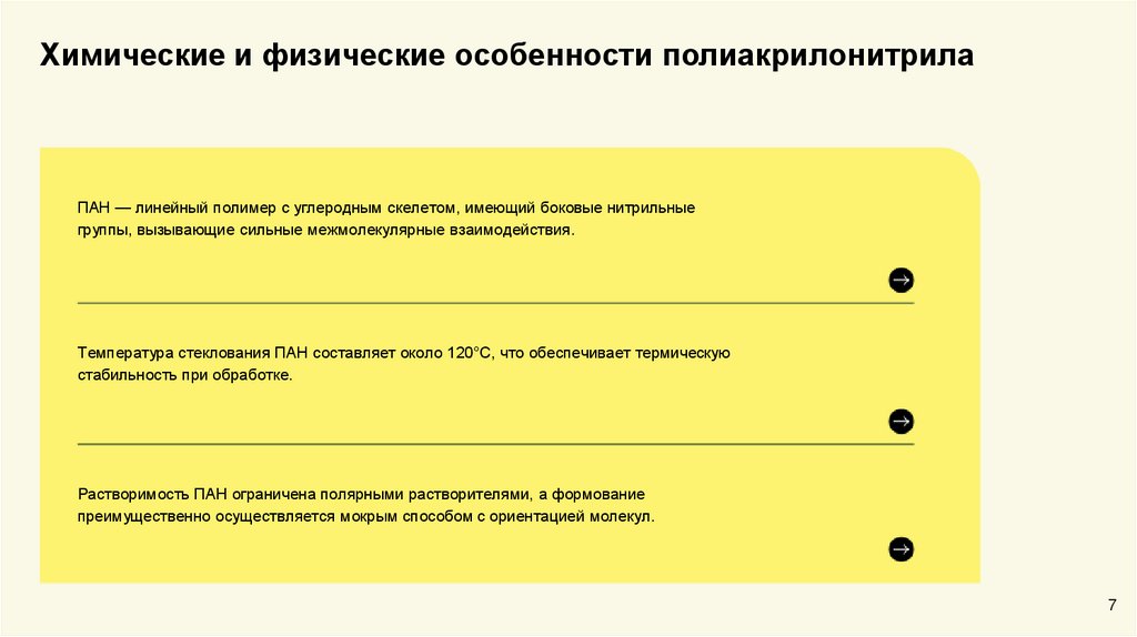 Химические и физические особенности полиакрилонитрилаПАН — линейный полимер с углеродным скелетом, имеющий боковые нитрильные