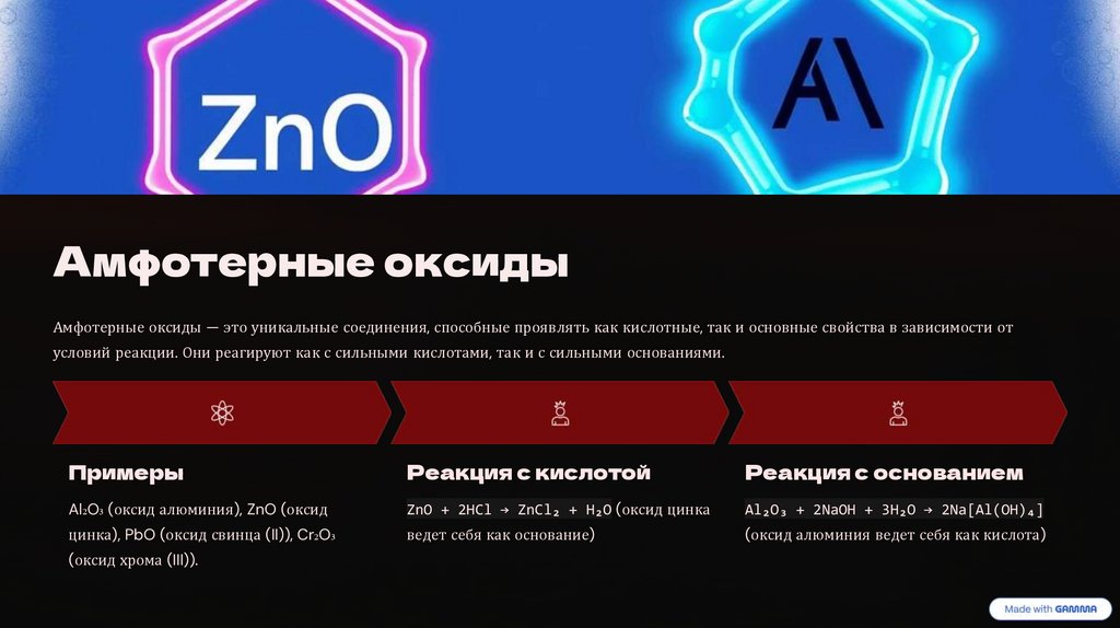 Амфотерные оксидыАмфотерные оксиды — это уникальные соединения, способные проявлять как кислотные, так и основные свойства в зависимости от