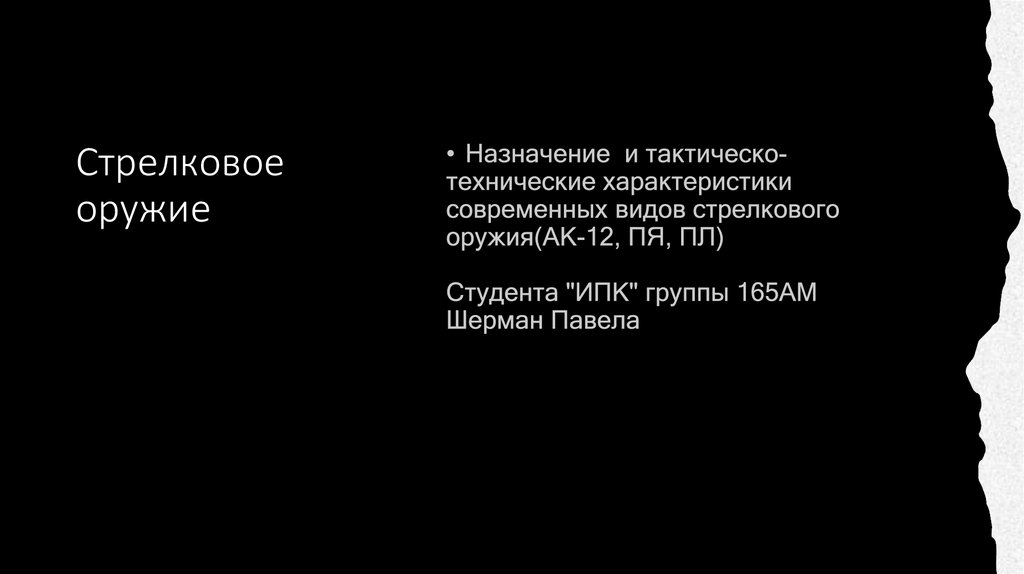 современного стрелкового оружия, входящих в единый комплекс вооружения