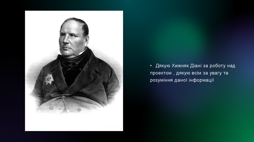 • Дякую Хижняк Діані за роботу надпроектом , дякую всім за увагу та