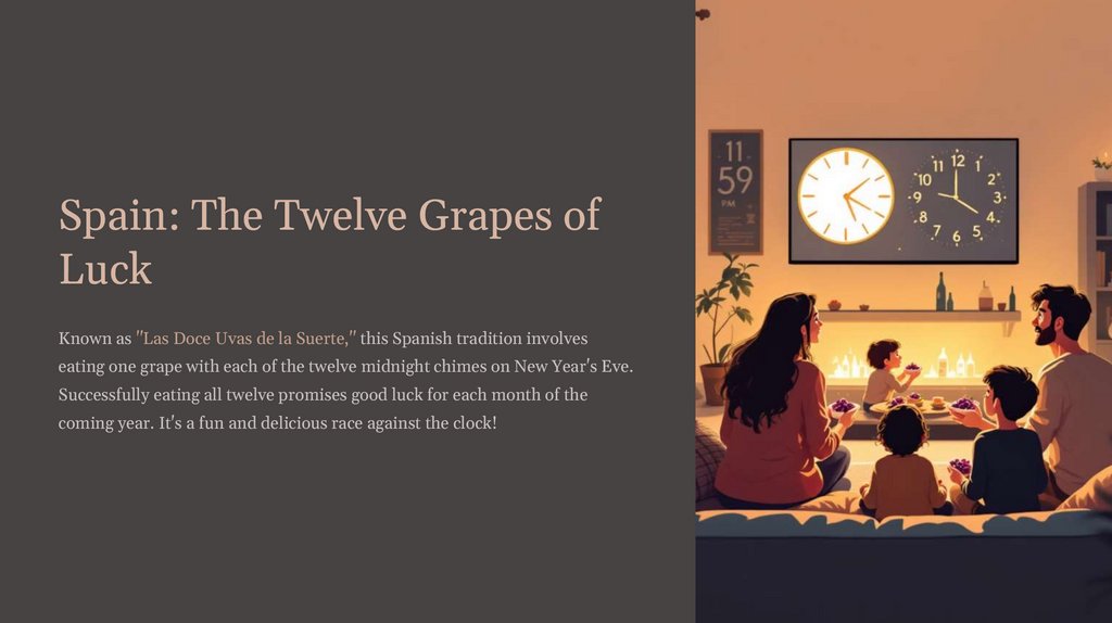 Known as "Las Doce Uvas de la Suerte," this Spanish tradition involves