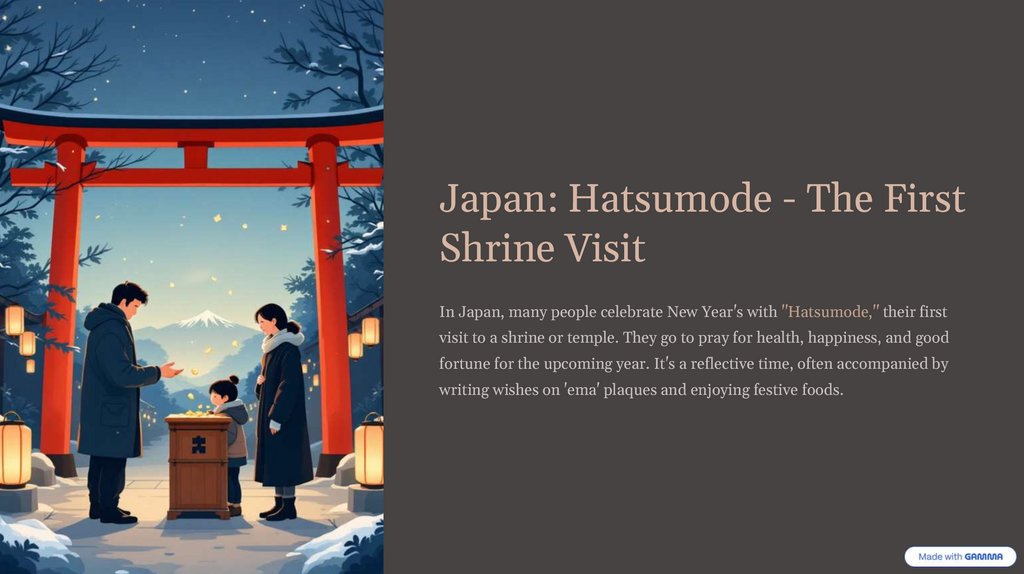 In Japan, many people celebrate New Year's with "Hatsumode," their first