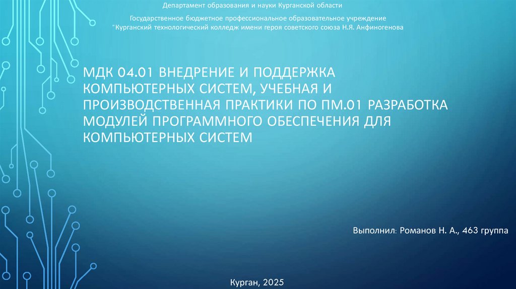 1. МДК 04.01 Внедрение и поддержка компьютерных систем, учебная и производственная практики по ПМ.01 Разработка модулей