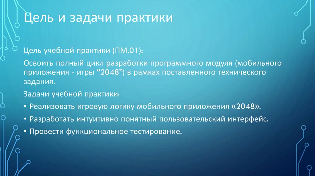 Цель и задачи практикиЦель учебной практики (ПМ.01):