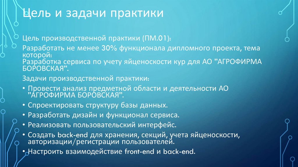 Цель и задачи практикиЦель производственной практики (ПМ.01):