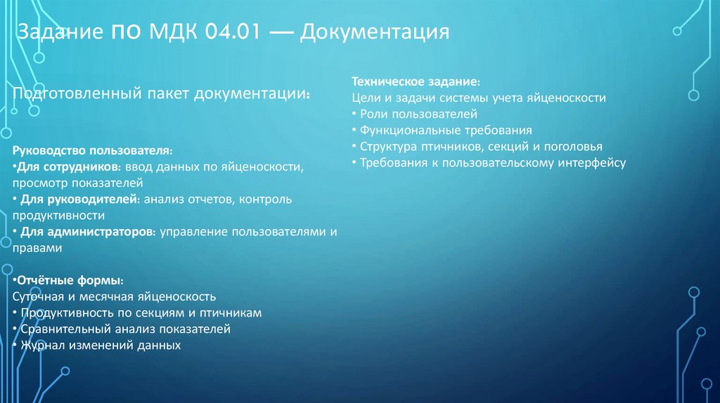 Задание по МДК 04.01 — ДокументацияПодготовленный пакет документации: