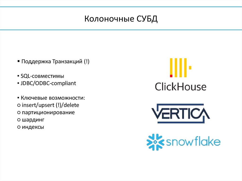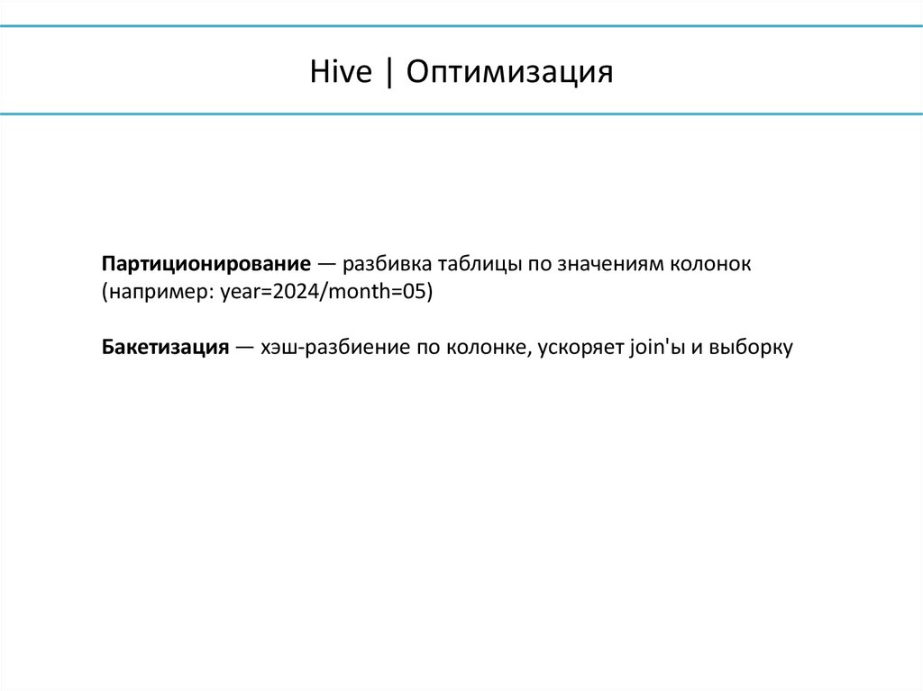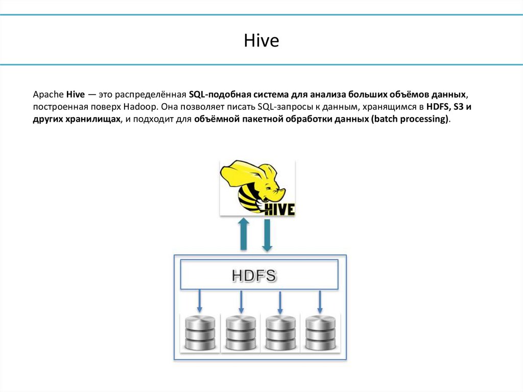 → Использование Hive, Redshift, BigQuery, Snowflake, Databricks и др.