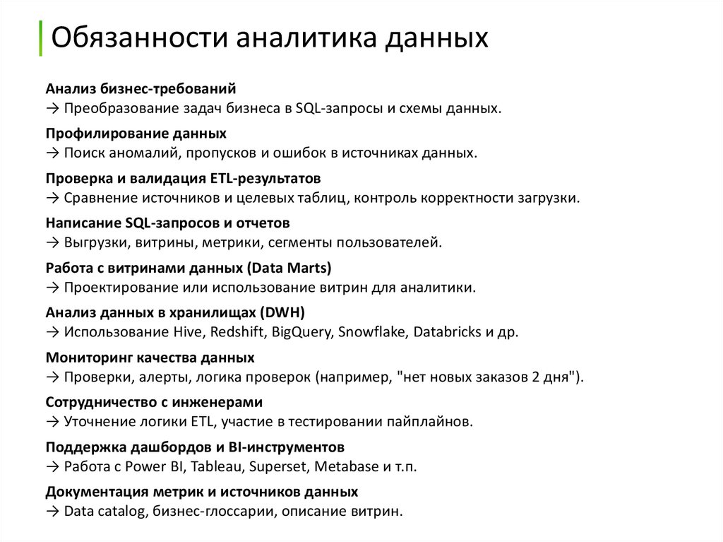 → Уточнение логики ETL, участие в тестировании пайплайнов.