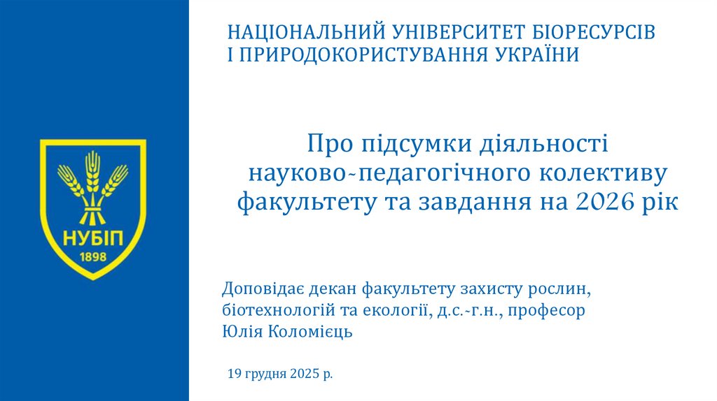 1. Про підсумки діяльності науково-педагогічного колективу факультету та завдання на 2026 рік